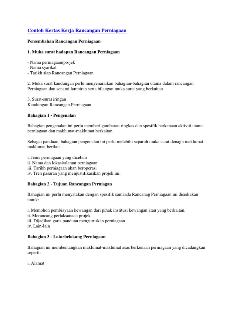 Contoh Kertas Kerja Rancangan Perniagaan Pdf