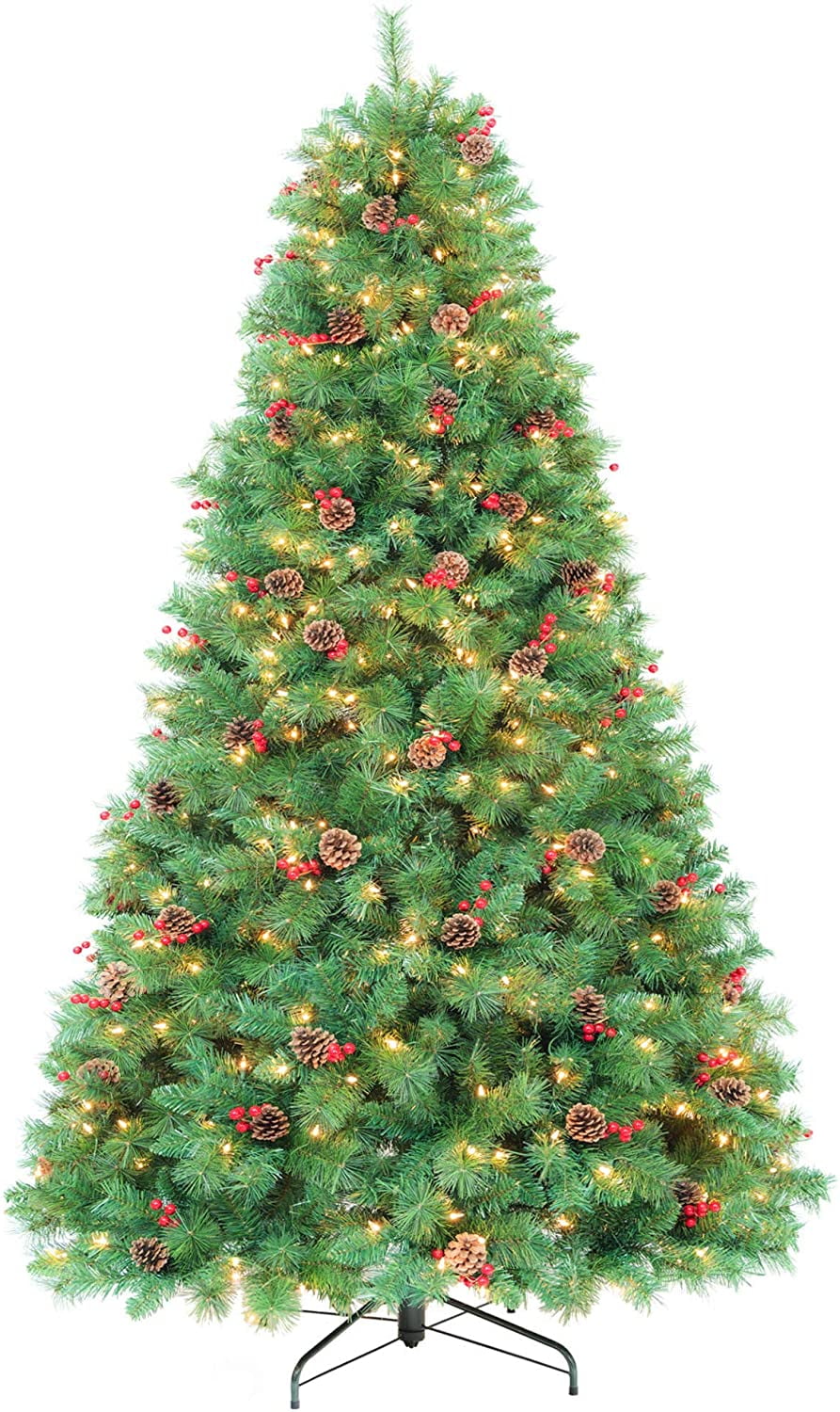 Pre Lit 6 5 Foot Artificial Pine Christmas Tree With Decorated Red Berries And Pine Cone And Pre Strung 450 Soft White Lights With Storage Bag And Fluffing Gloves Walmart Canada
